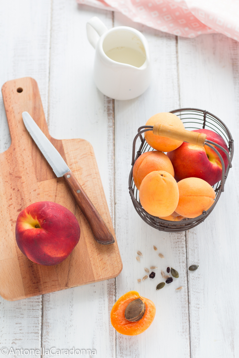 Per realizzare uno smoothie di pesche e albicocche, preparate per prima cosa la frutta.